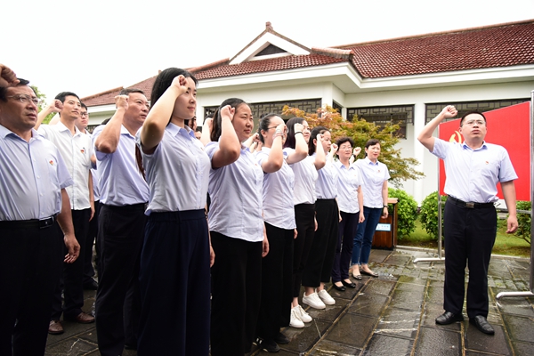 下午,在李克農(nóng)故居,錢總帶領(lǐng)全體黨員重溫了入黨誓詞。在渡江戰(zhàn)役紀(jì)念館,一件件陳列的歷史文獻(xiàn),一幅幅革命烈士的照片,一個(gè)個(gè)感人至深的革命故事,一段段珍貴的影像資料,讓全體黨員重回到那段跌宕起伏、波瀾壯闊的革命歲月,親身感受中國(guó)共產(chǎn)黨艱苦卓絕的奮斗史和輝煌歷程,接受了一次黨史黨性教育和精神洗禮。