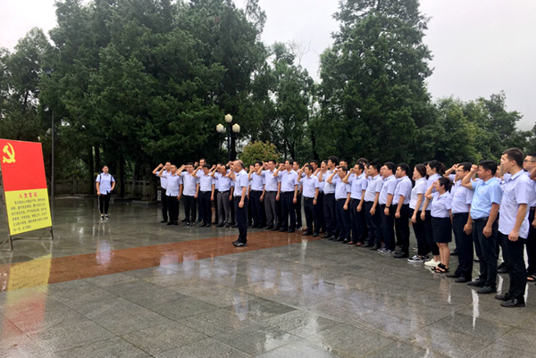 下午,大家冒著細雨來到金寨縣紅軍廣場,向革命烈士敬獻了花籃。在巍峨的革命烈士紀念塔下,面對鮮艷的黨旗,公司黨委委員、總工程師彭申凱帶領(lǐng)全體黨員一起重溫了入黨誓詞。