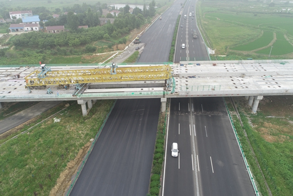 上跨G3京臺高速分離立交橋?yàn)樯娓咚偈┕?所跨路段日均車流量達(dá)五萬多輛,并與正在進(jìn)行的高速改擴(kuò)建瀝青攤鋪交叉施工,需要在規(guī)定的半幅封閉時(shí)間內(nèi)完成上跨梁板架設(shè)任務(wù),施工環(huán)境復(fù)雜,組織難度較大。經(jīng)過多次專家論證,項(xiàng)目不斷優(yōu)化施工方案,并堅(jiān)持責(zé)任到人,狠抓時(shí)間節(jié)點(diǎn),有效克服了各項(xiàng)困難,梁板架設(shè)有序推進(jìn),順利實(shí)現(xiàn)了上跨高速橋的順利合龍。