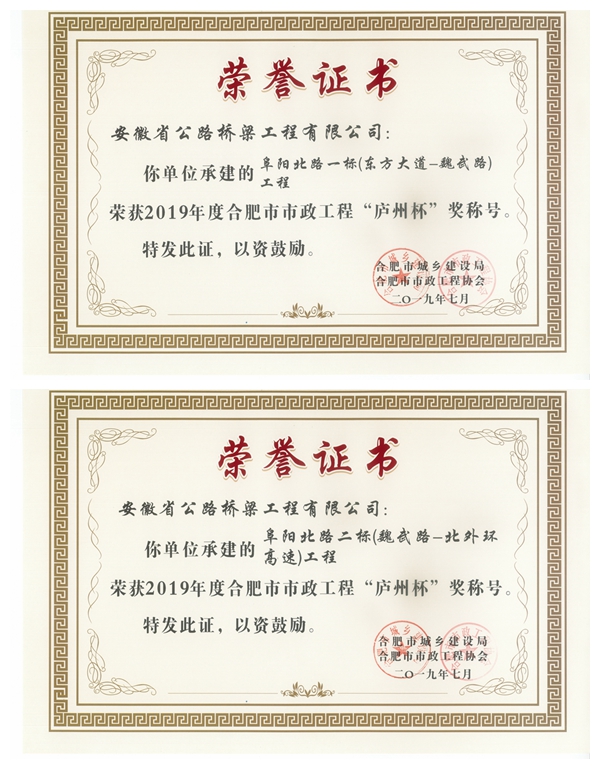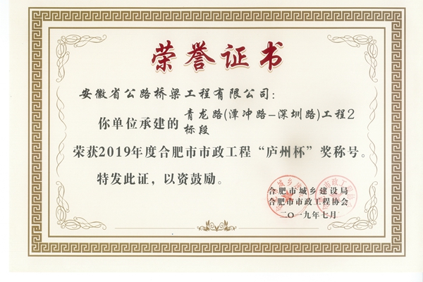 市政分公司三項目喜獲“廬州杯” 發(fā)布時間:2019年07月29日 來源:市政分公司 發(fā)布人: 作者:王東 瀏覽:3657次 近日從合肥市政工程協(xié)會獲悉,公司承建的阜陽北路一標、阜陽北路二標、青龍路二標等項目喜獲“廬州杯”。截至目前,市政分公司已累計獲得19個“廬州杯”獎項。