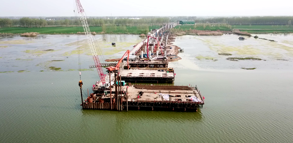 4月8日下午,固蚌高速2標(biāo)兩項(xiàng)節(jié)點(diǎn)目標(biāo)取得突破,控制性工程澮河特大橋南引橋樁基全部完成,39號主墩左幅第一座鋼圍堰順利合攏,同時各施工點(diǎn)都呈現(xiàn)出一片火熱大干景象。