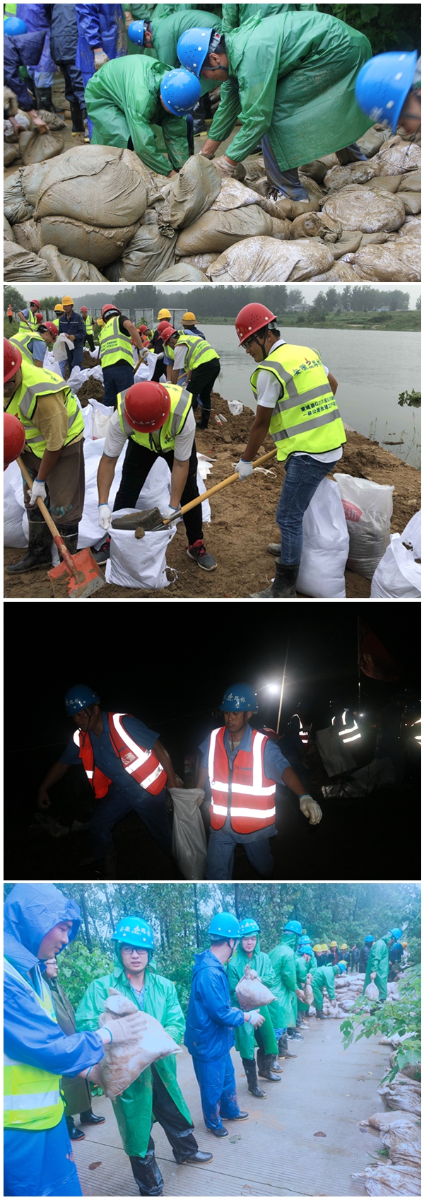 7月18日晚至19日凌晨,分公司組織近四百名員工緊急馳援南淝河和三河古鎮(zhèn)抗洪搶險。在抗洪一線,分公司員工充分發(fā)揚“特別能吃苦,特別能戰(zhàn)斗”優(yōu)良企業(yè)作風,團結(jié)協(xié)作,經(jīng)過20多個小時的鏖戰(zhàn),成功搶筑堤壩6.4公里,成功化解兩處險情,為打贏三河保衛(wèi)戰(zhàn)貢獻了力量。7月20日下午,位于肥西縣舒合圩出現(xiàn)險情。分公司防汛救災搶險突擊隊立即轉(zhuǎn)戰(zhàn)舒合圩。經(jīng)過4個多小時的搶險工作后,再次轉(zhuǎn)戰(zhàn)到巢湖北岸環(huán)湖北路,開始新的抗洪搶險。在廬江的同大鎮(zhèn)和白山鎮(zhèn),受洪災影響,道路損壞嚴重。郭柯路項目積極響應交通局號召,率先調(diào)入人員、設備、物資,搶修損毀道路,保障當?shù)厝嗣袢罕姲踩行蜣D(zhuǎn)移。蒙城PPP項目面對不斷加強的防洪度汛壓力,全員出動,采用防滲布、沙包等材料筑起一道道安全屏障,確保沿岸人民群眾的出行安全,保障現(xiàn)場施工安全。