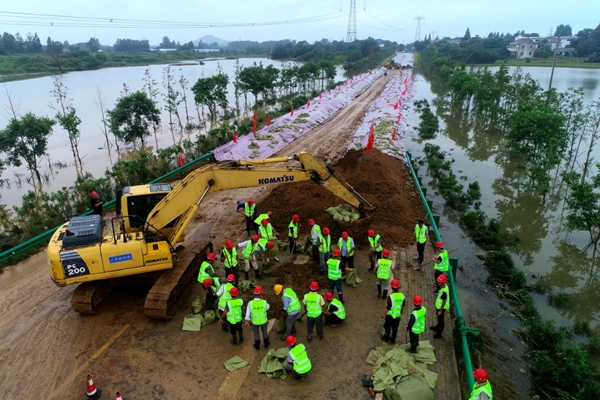【抗洪搶險進(jìn)行時】安徽路橋徽州大道抗洪搶險隊晝夜奮戰(zhàn) 搶通防汛通道
