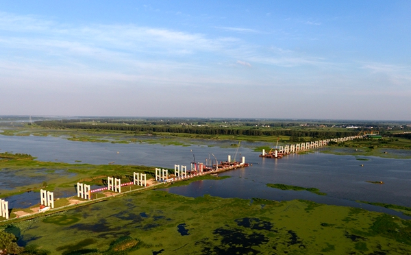 澮河特大橋是固蚌高速的控制性工程。8月份,橋梁主體施工已轉(zhuǎn)向橋面系上部結(jié)構(gòu),其中鋼梁架設(shè)是關(guān)鍵工序。面對鋼梁進場嚴重滯后的困境,項目部主動對接業(yè)主單位,找出癥結(jié),對癥下藥。一方面,增加進場人員、機械數(shù)量,加大施工資源投入。另一方面,及時調(diào)整工序銜接,安排專人駐點鋼梁生產(chǎn)基地,嚴格把關(guān)每一批鋼材質(zhì)量,監(jiān)督各道生產(chǎn)工序,在提質(zhì)增效上下功夫,全力突破鋼梁架設(shè)難關(guān)。