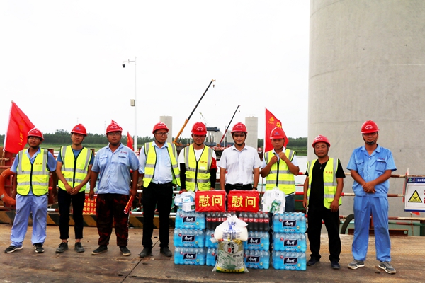 太陽炙烤著大地,體感溫度逼近40℃。面對高溫熱浪,項目多措并舉,全力做好現(xiàn)場施工安全保障關(guān)。每日安排送清涼,采購西瓜、綠豆、白糖、礦泉水及防暑降溫藥品發(fā)放到一線工人手中。同時,加強暑期安全施工技能培訓(xùn),實施“白+黑”錯峰上崗,全力保障生產(chǎn)安全。