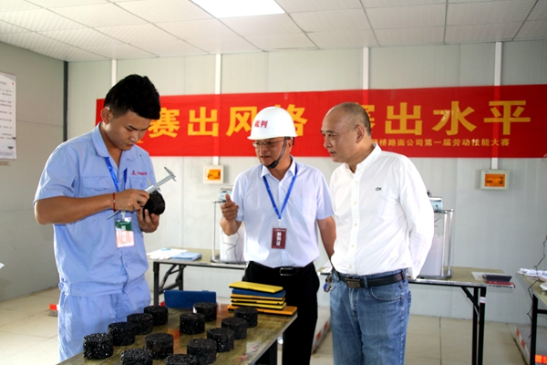 為加強(qiáng)專業(yè)技術(shù)人才培養(yǎng),大力弘揚(yáng)工匠精神,建設(shè)知識型、技能型、創(chuàng)新型和實(shí)干型人才隊(duì)伍,9月28日上午,路面公司第一屆勞動技能大賽之測量試驗(yàn)比賽在明巢高速05標(biāo)項(xiàng)目部成功舉辦。集團(tuán)公司工會女工委副主任饒曉寧,公司黨委委員、總工程師彭申凱,黨委委員、副總經(jīng)理杜海峰,工會主席楊建強(qiáng),黨委辦公室主任李靜波應(yīng)邀出席并觀看比賽。
