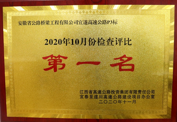 近日,江西省高速集團(tuán)宜遂項(xiàng)目辦下發(fā)關(guān)于表彰十月份檢查評比先進(jìn)單位的通報(bào)文件,公司承建的宜遂高速P3標(biāo)在綜合檢查評比中表現(xiàn)優(yōu)秀,榮獲路面單位第一名。