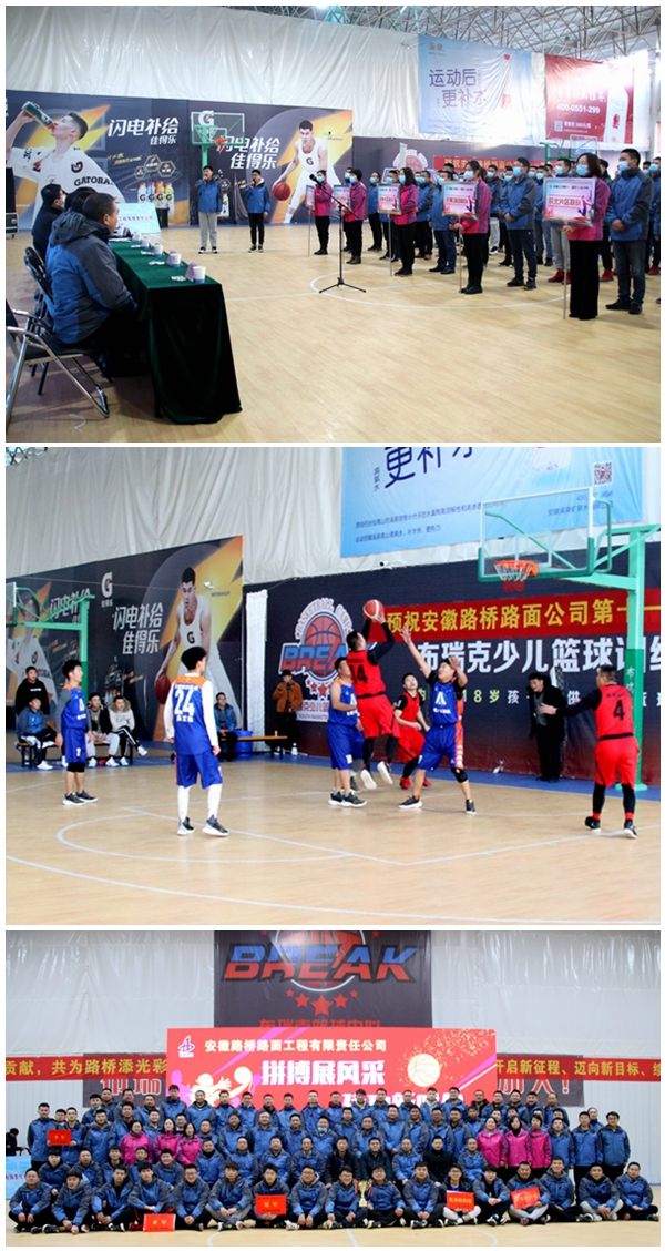 為豐富職工文化生活,增進職工溝通交流,促進企業(yè)文化建設(shè),提高團隊凝聚力,12月30日至31日,安徽路橋路面公司第十一屆職工籃球賽在合肥布瑞克籃球館成功舉辦。公司黨委委員、紀(jì)委書記林緒坤,工會主席楊建強出席開幕式。