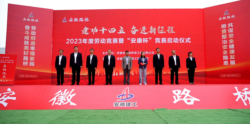 5月6日上午,公司2023年度勞動(dòng)競(jìng)賽暨“安康杯”競(jìng)賽啟動(dòng)儀式在銅商高速無(wú)巢段主體工程01標(biāo)段項(xiàng)目部正式啟動(dòng)。安徽省投資集團(tuán)皖江公司總經(jīng)理曾勇,建工控股工會(huì)副主席、建工股份副總經(jīng)理邢應(yīng)梅,公司領(lǐng)導(dǎo)、機(jī)關(guān)部門(mén)負(fù)責(zé)人,分子公司領(lǐng)導(dǎo)班子成員、項(xiàng)目管理部、安全環(huán)保部負(fù)責(zé)人,2022年度勞動(dòng)競(jìng)賽優(yōu)勝單位和優(yōu)勝項(xiàng)目部代表共計(jì)100余人參加啟動(dòng)儀式。