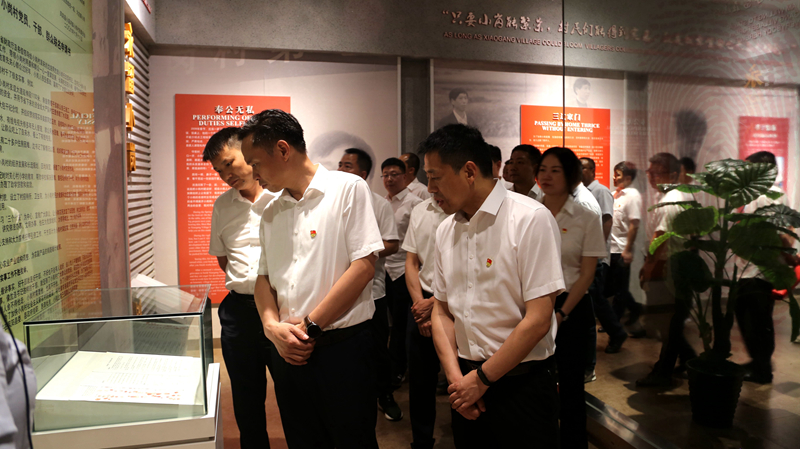 在大包干紀念館,大家認真觀看圖文資料和原景復原模型,深入了解小崗村掀起中國農(nóng)村改革序幕的歷程,深切感受改革開放四十多年來小崗村發(fā)生的翻天覆地變化,進一步感悟了“改革創(chuàng)新、敢為人先”的小崗精神。在沈浩同志先進事跡陳列館,大家仔細觀看了沈浩同志在小崗村工作和生活過程中留下的文字、圖片和實物資料,深入了解了沈浩同志“兩任村干部瀝血嘔心帶領一方求發(fā)展,六載離家鞠躬盡瘁引導萬民奔小康”的感人事跡,真切感受到沈浩同志扎根基層、銳意進取、一心為民、公而忘私的精神品質(zhì)。在陳列館南廣場,全體黨員重溫了入黨誓詞。