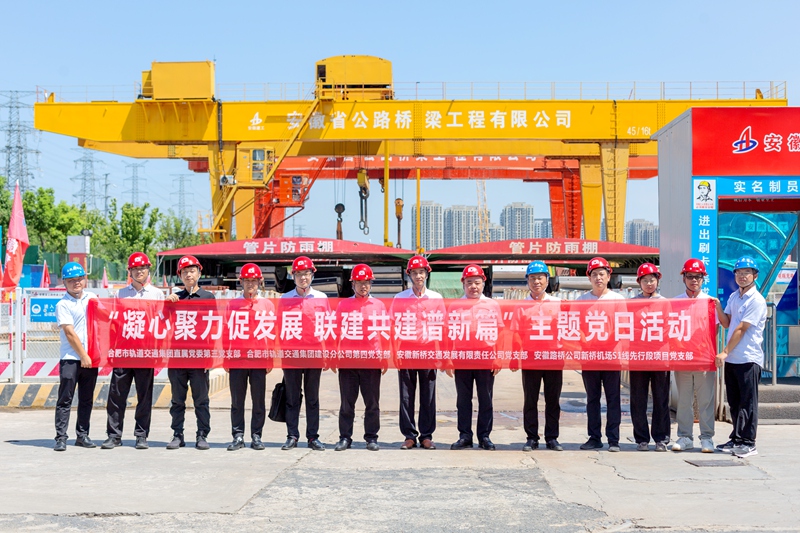 8月3日上午,新橋機場S1線先行段項目黨支部聯(lián)合合肥市軌道交通集團所屬黨支部、淮南市壽縣安徽新橋交通發(fā)展有限責(zé)任公司黨支部共同開展“凝心聚力促發(fā)展 聯(lián)建共建譜新篇”主題黨日活動。