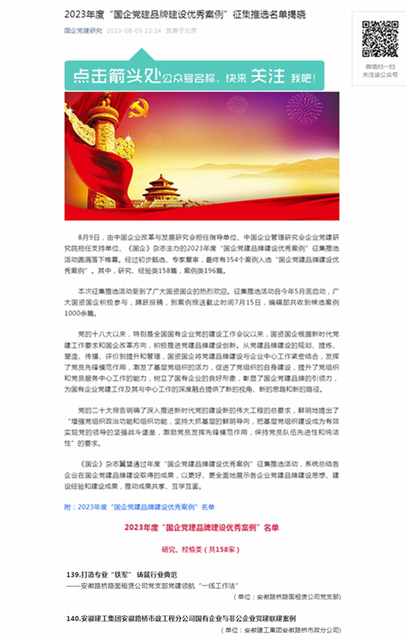 公司黨建品牌入選2023年度“國企黨建品牌建設(shè)優(yōu)秀案例”