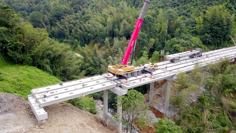 據(jù)了解,楊公山大橋位于遂川縣巾石鄉(xiāng)境內(nèi),分為右線和右外線,右線橋長140米,右外線橋長180米,共計60多片箱梁。為確保該橋梁板順利架設(shè),項(xiàng)目部針對施工特點(diǎn)、難點(diǎn)和重點(diǎn)及時做好安全技術(shù)交底工作,在施工過程中,項(xiàng)目部動態(tài)優(yōu)化資源配置,采用了3臺炮車及2臺吊車同時進(jìn)行運(yùn)輸和架設(shè)作業(yè),克服了工期緊、運(yùn)梁路線長等不利因素影響,順利地完成了架設(shè)任務(wù)。