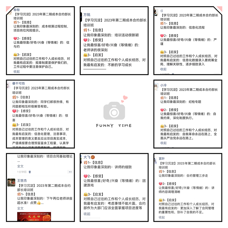 授課之余,培訓(xùn)班還安排了崗位研討與交流等學(xué)習(xí)活動(dòng),并專門開展一場“朋友圈分享學(xué)習(xí)心得”活動(dòng),讓大家暢所欲言,及時(shí)對(duì)外分享培訓(xùn)所獲——“信息、感受與啟發(fā)”,讓培訓(xùn)班的良好氛圍傳播至全公司,全面推動(dòng)學(xué)習(xí)型組織建設(shè)。培訓(xùn)班還開設(shè)了一場燒腦拓展訓(xùn)練活動(dòng)《極速60秒》,培養(yǎng)學(xué)員科學(xué)系統(tǒng)的思維方式,增強(qiáng)全局觀念。