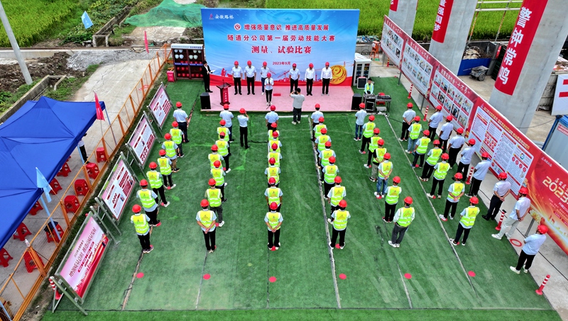 9月22日,隧道分公司在鳳毛快速通道項目成功舉辦第一屆試驗測量技能大賽,來自所屬項目組成的6支隊伍共36名技術(shù)人員參加比賽,公司黨委委員、紀委書記王鵬,副總工程師、總師辦主任劉曉晗應邀到場指導。