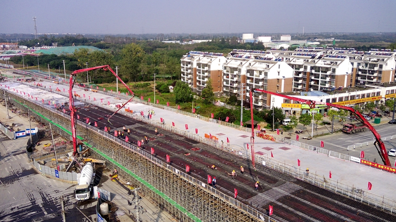 10月14日上午,G312合六路2標(biāo)項(xiàng)目“百日攻堅(jiān)大會(huì)戰(zhàn)”專項(xiàng)競(jìng)賽傳來捷報(bào),伴隨著小蜀山西路上跨橋最后一聯(lián)現(xiàn)澆箱梁頂板順利澆筑,項(xiàng)目主線順利實(shí)現(xiàn)貫通。