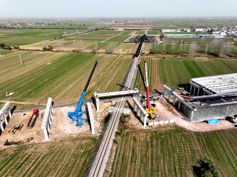 作為項(xiàng)目控制性工程,此次箱梁架設(shè)橫穿淮北礦業(yè)鐵路橋,位置特殊、地表崎嶇、安全防護(hù)要求較高。項(xiàng)目部提前謀劃,成立黨員突擊隊(duì),切實(shí)保障各施工環(huán)節(jié)緊密銜接。截至目前,該項(xiàng)目跨淮北礦業(yè)鐵路橋樁基和墩柱以及路基工程圓管涵已基本完成。