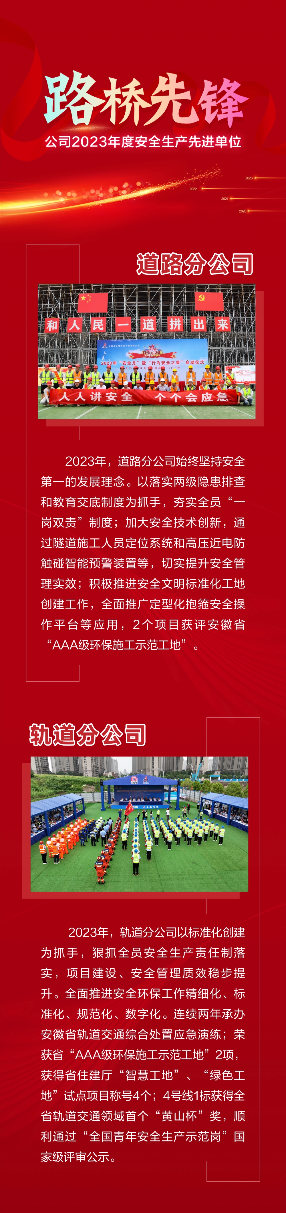 【路橋先鋒】公司2023年度安全生產(chǎn)先進(jìn)單位風(fēng)采展示 發(fā)布時(shí)間:2024年03月16日 來源:黨委組織部(人力資源部、黨委宣傳部)、所屬各單位 發(fā)布人:黨委組織部(人力資源部、黨委宣傳部) 作者: 瀏覽:2457次