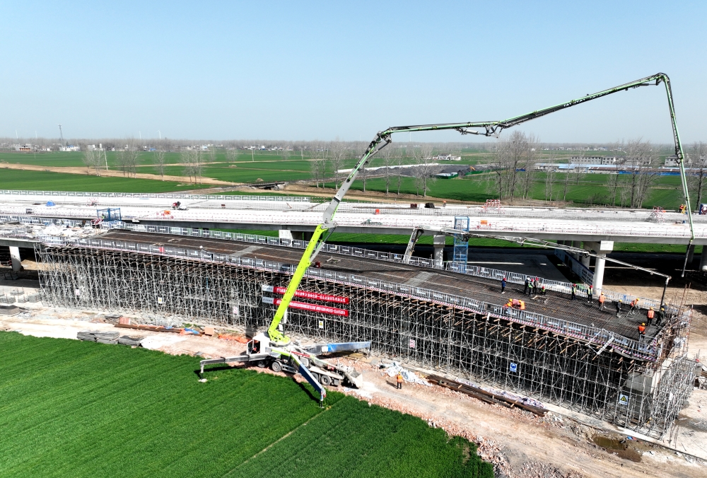 項目部提前謀劃部署,搶抓施工黃金時段,迅速組織路基工作面?zhèn)渫?,加強勞?wù)隊伍、機械設(shè)備和物資材料保障,在保證安全質(zhì)量的前提下,迅速投入到緊張的施工生產(chǎn)中。3月19日,順利完成渦陽互通DK0+233.949匝道橋第二聯(lián)現(xiàn)澆箱梁頂板澆筑,至此,標(biāo)段內(nèi)現(xiàn)澆箱梁全部完成澆筑。