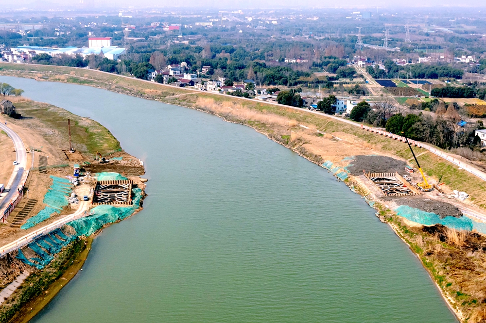 碧綠的青弋江畔,S334峨山路東延伸新建二期工程青弋江特大橋施工現(xiàn)場機械轟鳴、人影穿梭,正在緊張有序地進行大橋主墩承臺施工。為確保在青弋江汛期前實現(xiàn)主墩出水,項目乘著春節(jié)“不打烊”的干勁勢頭,倒排工期、科學部署,爭分奪秒搶抓進度。2月底已完成主墩鋼圍堰施工,3月份正式進入了主墩承臺施工階段,為下一步棧橋施工做好充足準備。