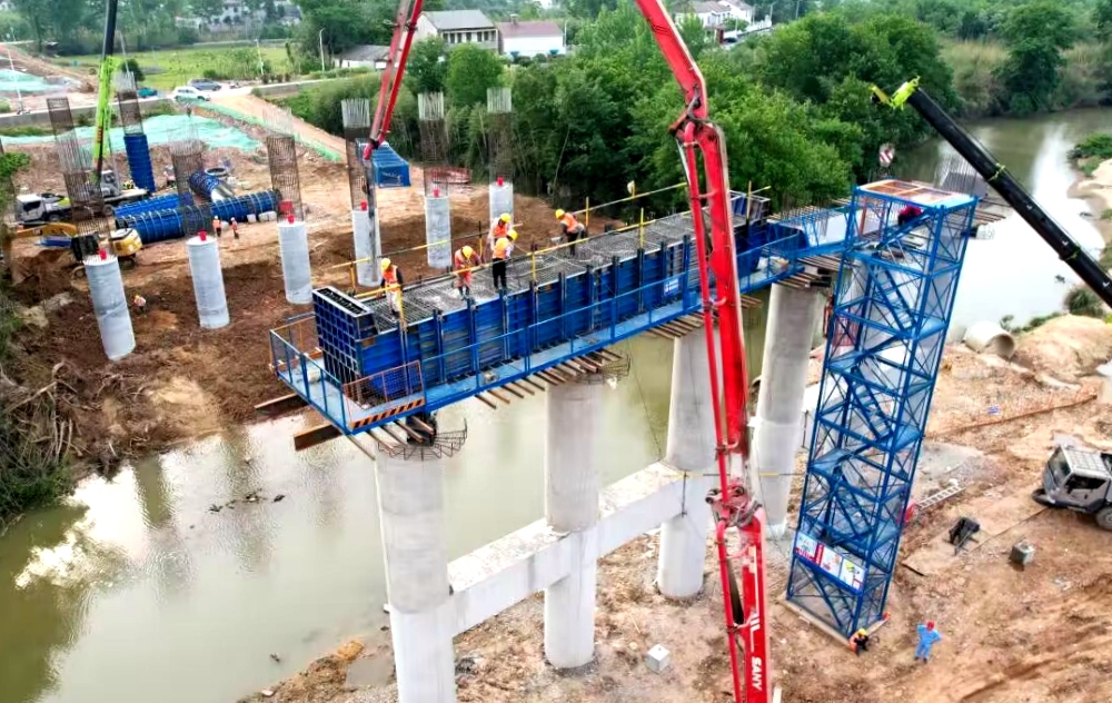 S16合周高速4標(biāo)東淝河大橋項(xiàng)目全員堅(jiān)守崗位,搶抓利好天氣,全面推進(jìn)主橋塔柱節(jié)段澆筑、橋梁墩柱施工和引橋梁板架設(shè)等重要工序。