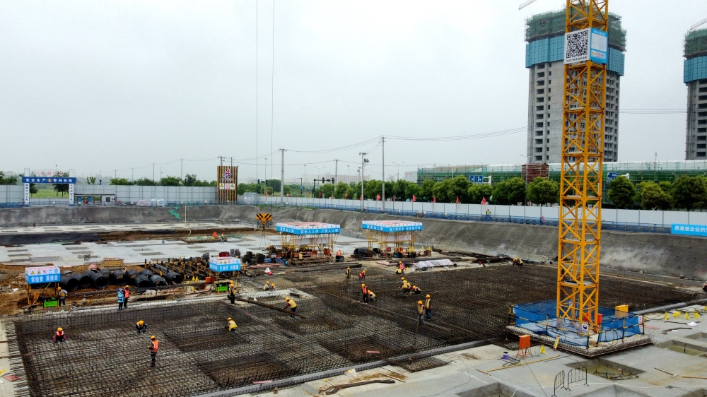 合肥新橋國(guó)際機(jī)場(chǎng)綜合交通中心項(xiàng)目施工現(xiàn)場(chǎng),50余名管理人員、700余名工人、27臺(tái)各類施工機(jī)械緊密配合,全力推進(jìn)項(xiàng)目合新六城際鐵路先行工程底板及交通中心負(fù)一層頂板施工,同時(shí)搶抓完成地鐵S1線非影響區(qū)最后一塊頂板。