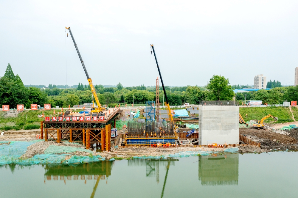 蕪湖正值梅雨季節(jié),面對(duì)青弋江日漸上漲的水情和項(xiàng)目趕在汛期高峰期到來前完成主墩出水的任務(wù),S334峨山路東延伸新建二期工程項(xiàng)目全體職工和參建班組堅(jiān)守在施工現(xiàn)場(chǎng)第一線,持續(xù)高效推動(dòng)項(xiàng)目建設(shè)。