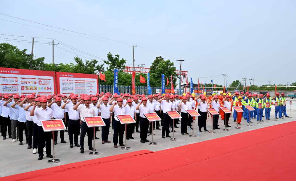 6月1日,安徽路橋2024年“安全生產月”啟動儀式暨起重傷害事故應急演練在淮桐高速合肥段2標順利舉辦。公司黨委書記、董事長錢申春作動員部署講話,并帶領全體人員集中進行安全宣誓。公司領導班子成員、機關各部門負責人和分子公司黨政主要負責同志,部分項目負責人、安全部負責人及工友代表等共計130余人參加啟動儀式。