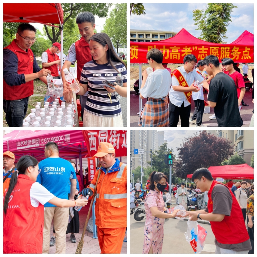 在考點外,志愿者們設立了“愛心助考站”,將助考遮陽棚變成“能量站”,為考生及家長搭建遮陽避雨的休息區(qū),提供應急藥品、防暑降溫用品、文具補給等貼心服務。隨時為莘莘學子、陪考家長、工作人員和民警同志“加油”“打氣”。