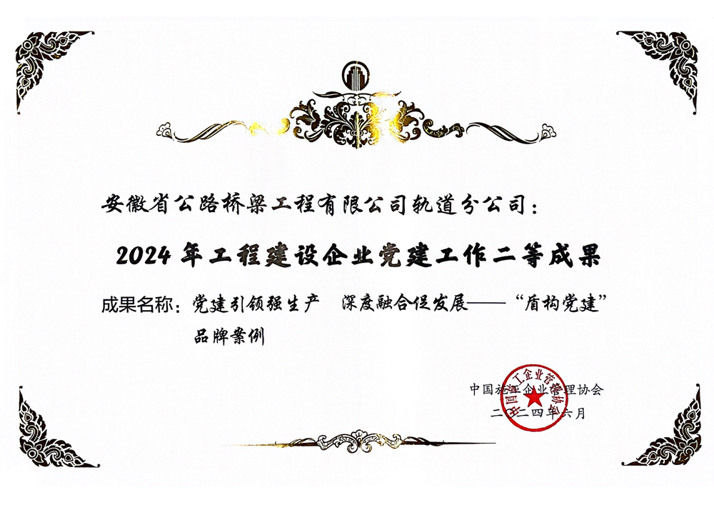 公司兩項黨建品牌獲評中施企協(xié)2024年工程建設(shè)企業(yè)黨建工作二等成果