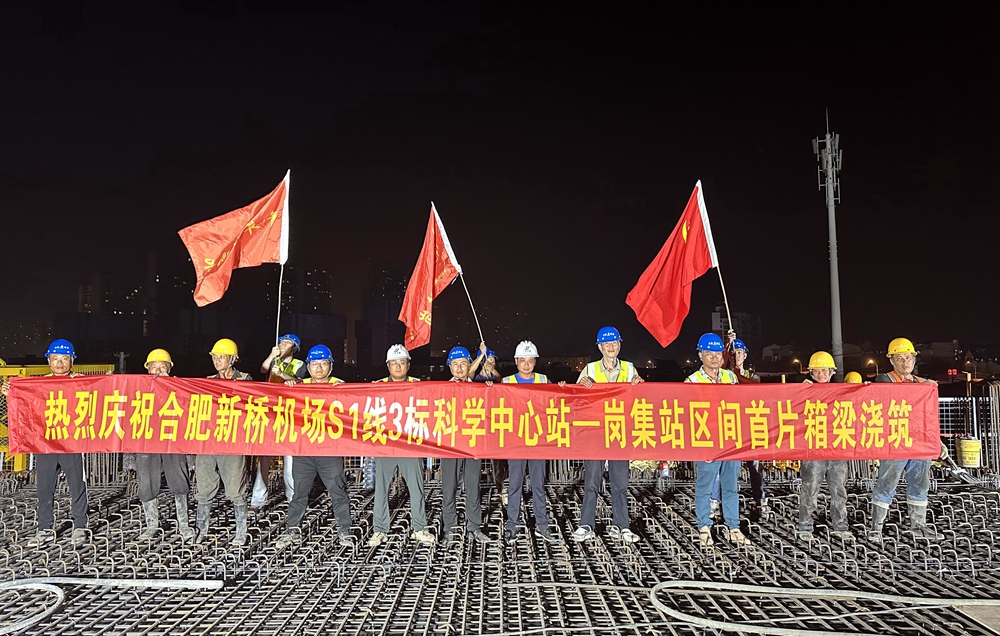【路橋“競”行時】合肥新橋機場S1線3標科學中心站-崗集站區(qū)間首跨箱梁完成澆筑