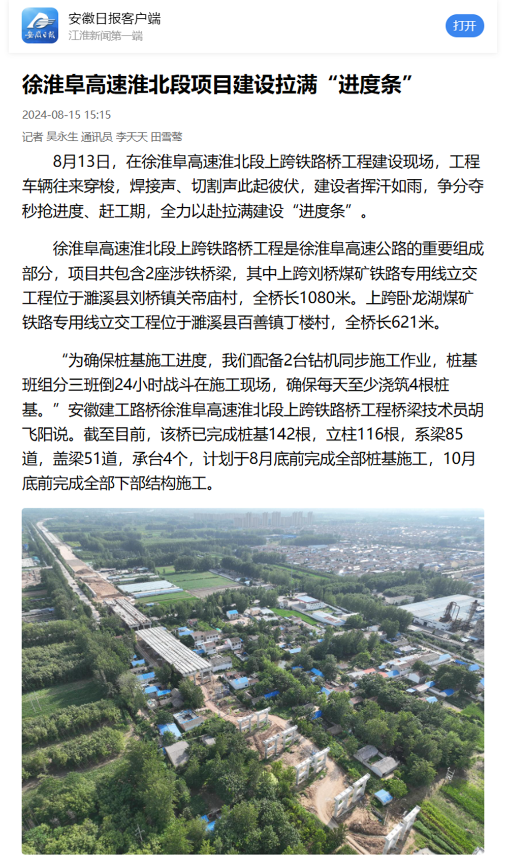【名媒聚焦】安徽日?qǐng)?bào)客戶端聚焦徐淮阜高速淮北段上跨鐵路橋工程建設(shè)
