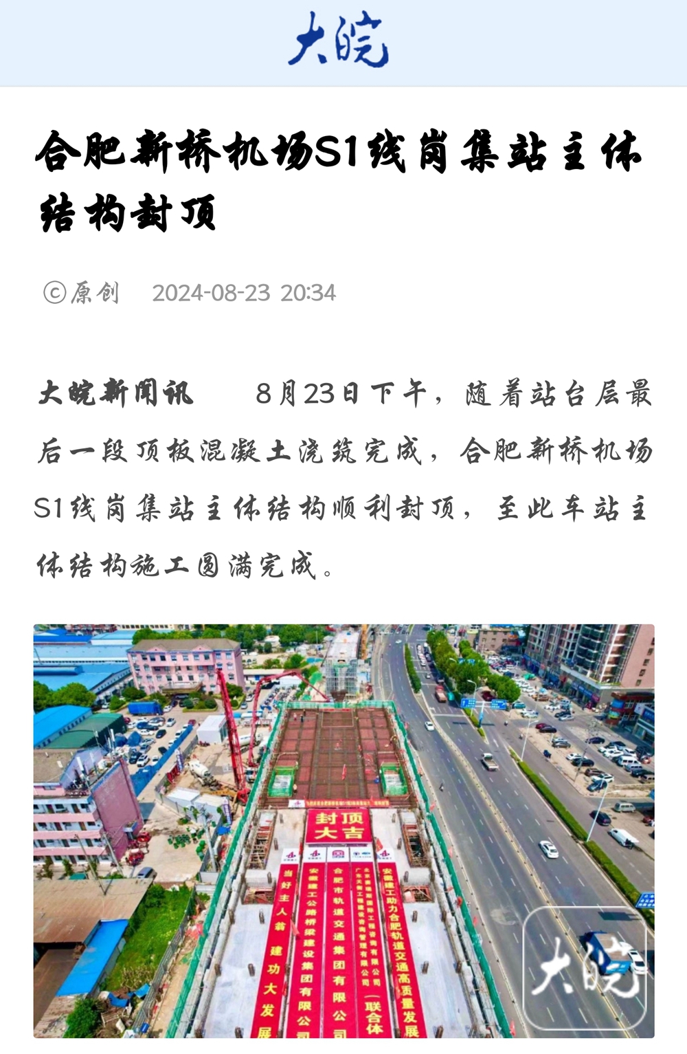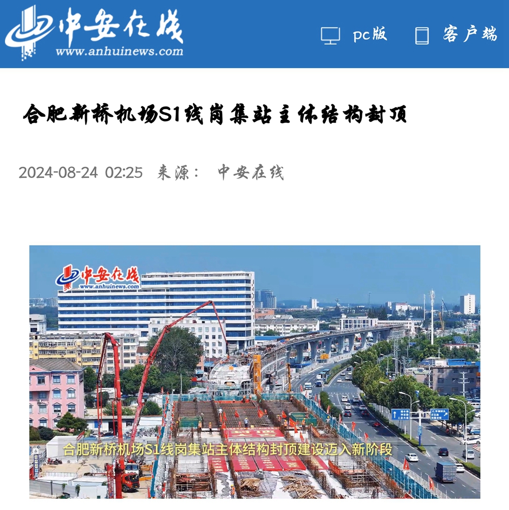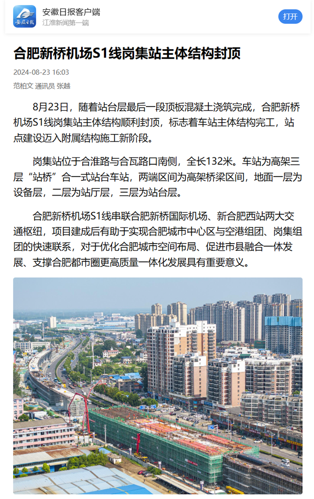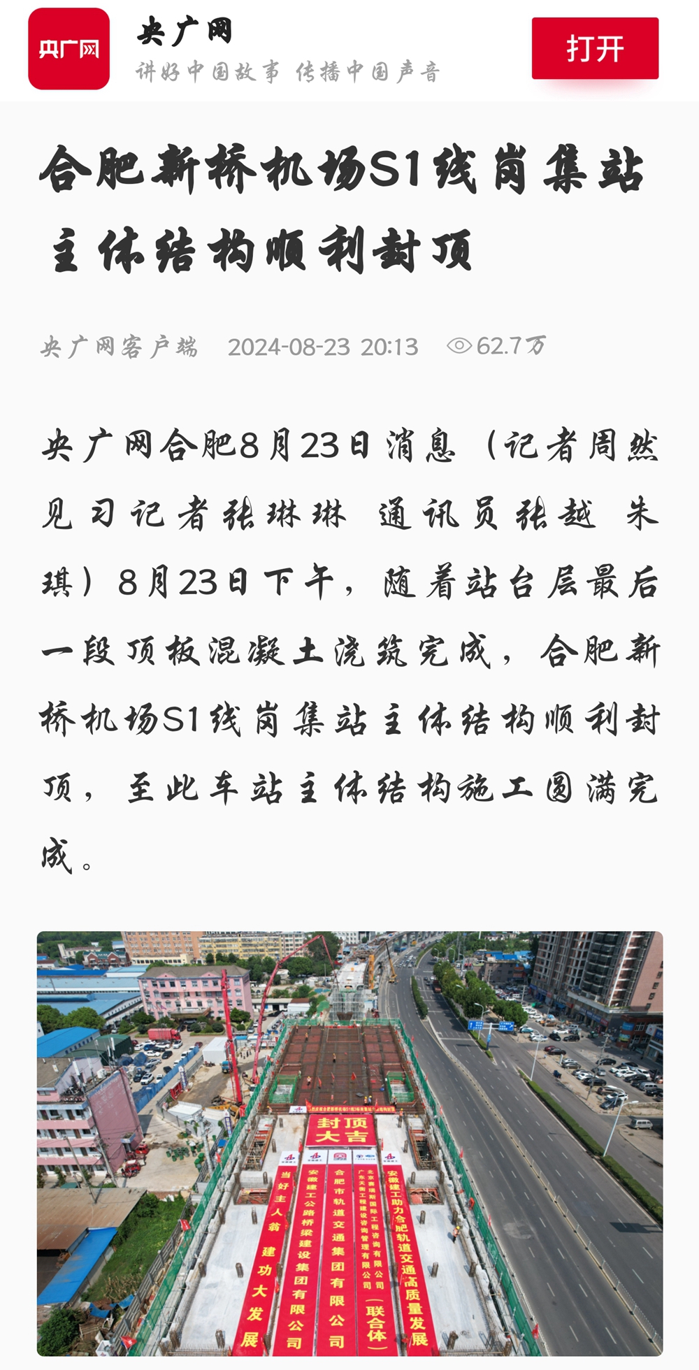【名媒聚焦】央廣網(wǎng)、中安在線、安徽日報等主流媒體聚焦合肥新橋機(jī)場S1線項目崗集站主體結(jié)構(gòu)封頂