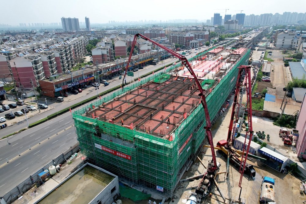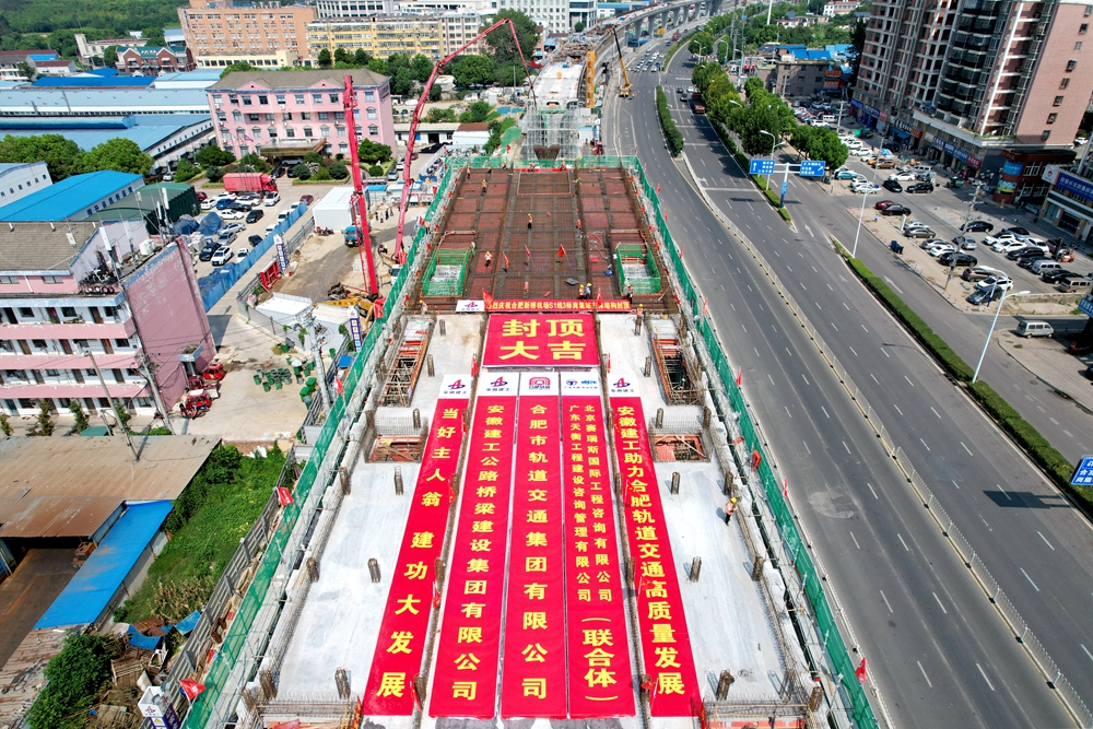 8月23日,隨著站臺層最后一段頂板混凝土澆筑完成,合肥新橋機(jī)場S1線崗集站主體結(jié)構(gòu)順利封頂,標(biāo)志著車站主體結(jié)構(gòu)完工,站點建設(shè)邁入附屬結(jié)構(gòu)施工新階段。