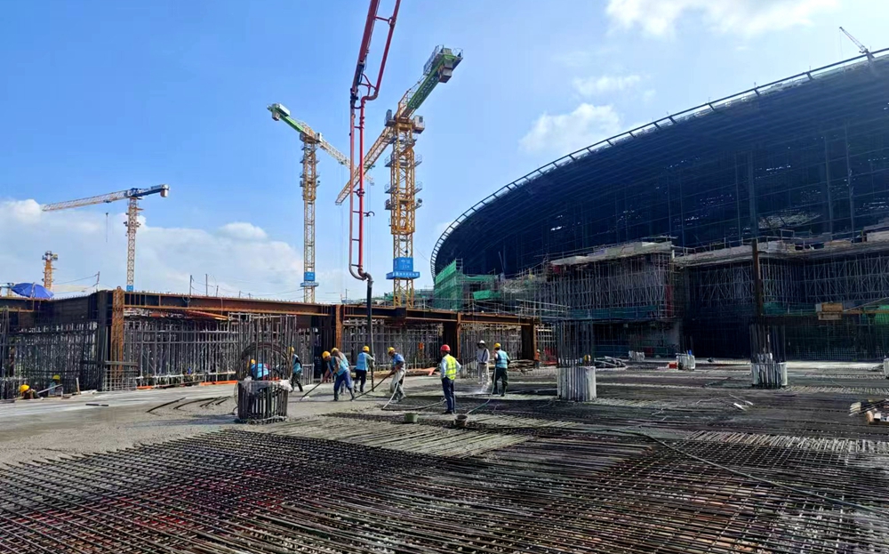 8月29日,合肥新橋國際機(jī)場綜合交通中心項(xiàng)目GTC A4-1區(qū)空腔層結(jié)構(gòu)混凝土澆筑完成。
