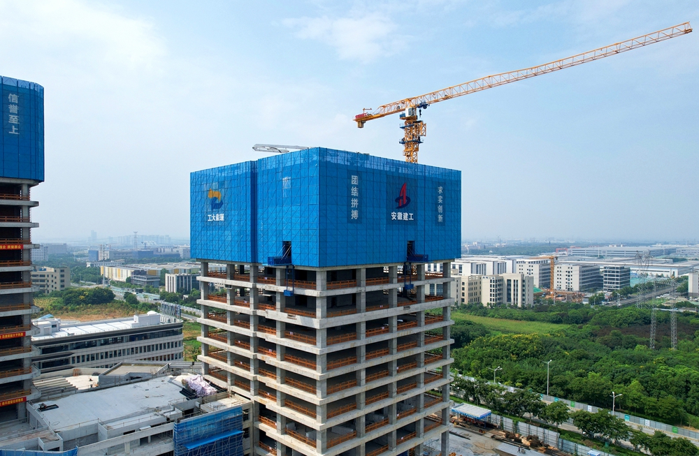 桃花科創(chuàng)產業(yè)園項目A1#樓,是公司承建的首個超高層建筑,地上29層、地下2層,總建筑面積5.4萬平方米,建設高度129.6米,建成后將成為包含辦公、商業(yè)、酒店的商業(yè)綜合體。建設過程中,項目采用智能布料機及附著式升降腳手架等新工藝新技術,實現6天一個標準層的建設新速度,步入“快增長”時期。