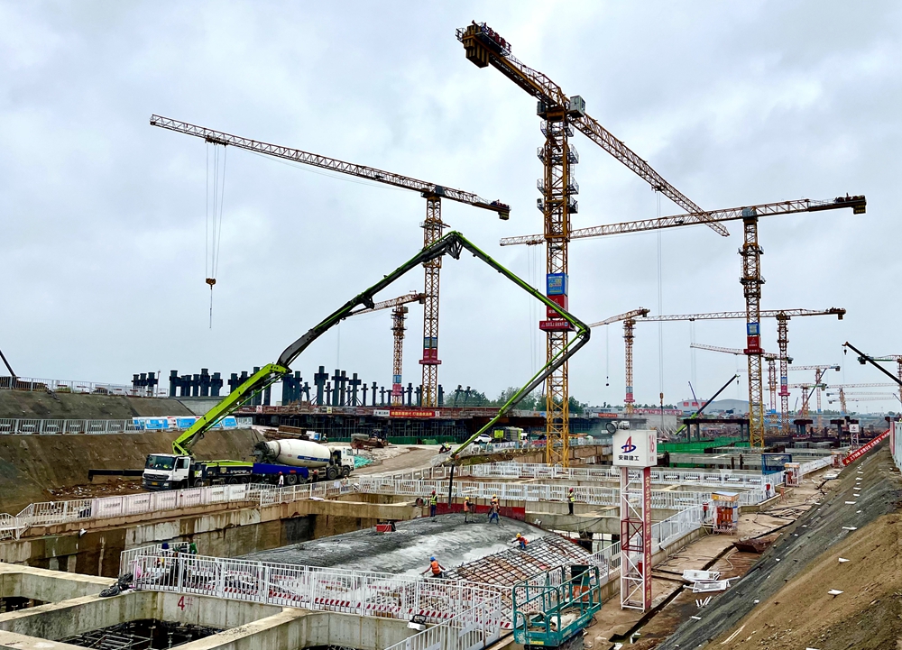 9月12日,經(jīng)過28小時(shí)的緊張施工,合肥新橋國(guó)際機(jī)場(chǎng)綜合交通中心項(xiàng)目合新六城際鐵路新橋機(jī)場(chǎng)站先行工程首段馬蹄拱形頂板澆筑完成。