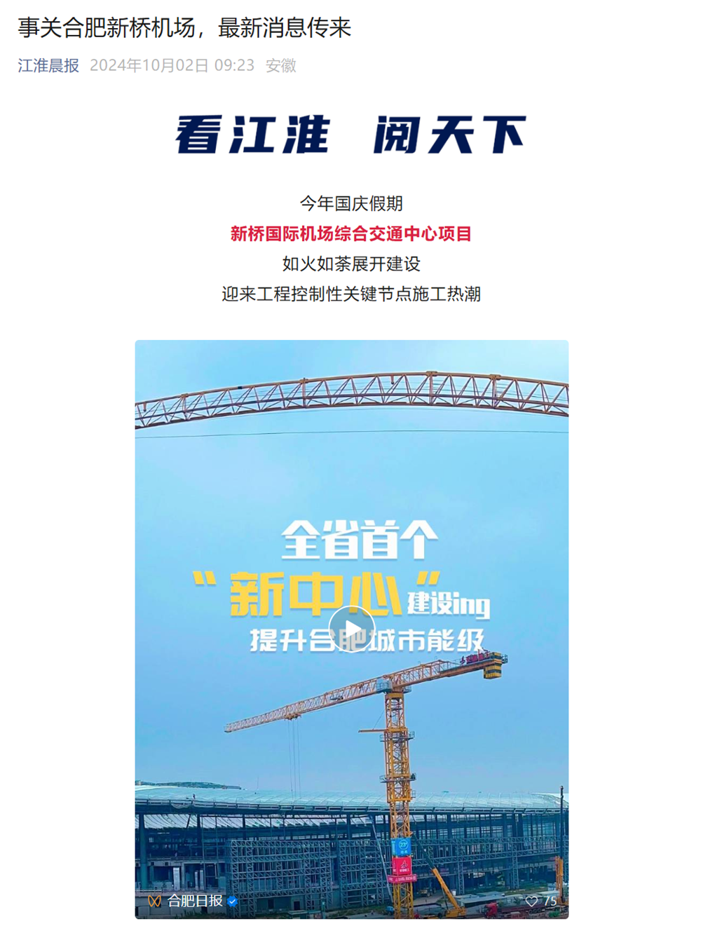 國慶前后,安徽新聞聯(lián)播、安徽日報、江淮晨報等多家省級主流媒體紛紛聚焦公司承建的涇青高速04標、徐淮阜高速淮北段、合肥新橋國際機場綜合交通中心等重點項目建設(shè)情況進行報道。
