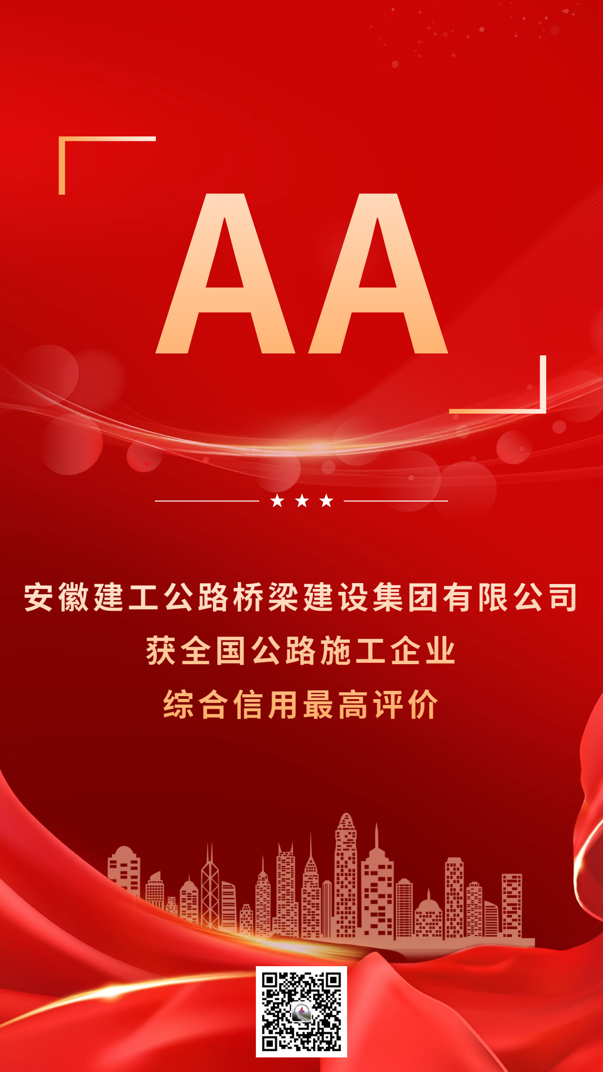 “AA”級!公司再獲全國公路施工企業(yè)綜合信用最高評價(jià)