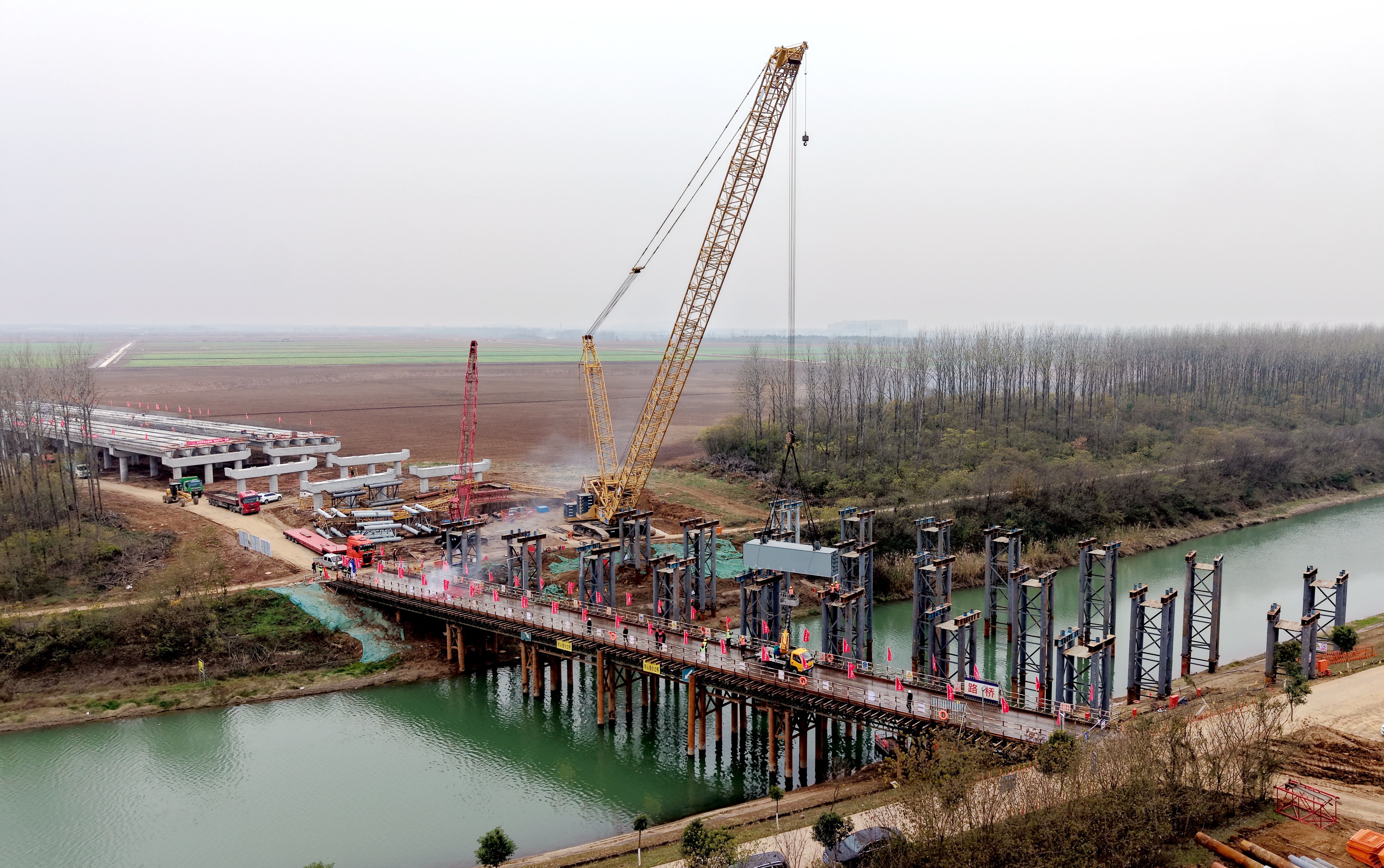 【路橋“競”行時】淮桐高速合肥段路基2標淠河總干渠大橋主橋首片鋼梁順利架設