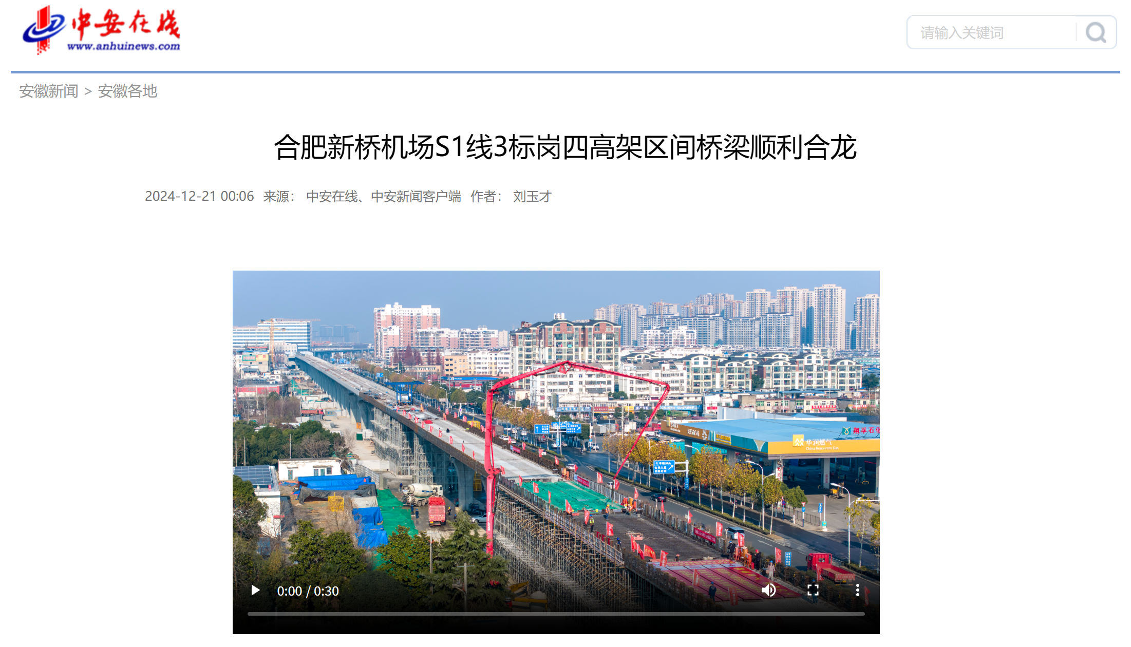 【名媒聚焦】央廣網(wǎng)、安徽日報、中安在線等主流媒體聚焦報道合肥新橋機場S1線3標(biāo)崗四高架區(qū)間橋梁合龍