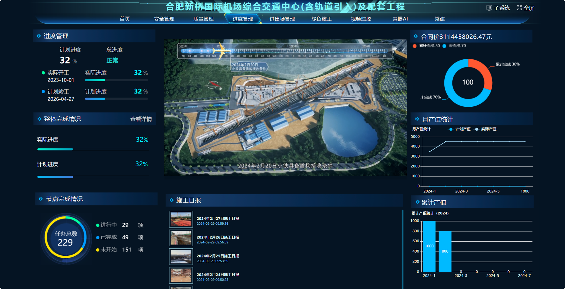 合肥新橋國際機場GTC主體工程項目是安徽省內(nèi)單體交叉空間最復雜的綜合交通樞紐工程,采用空地軌一體化設計方案,關鍵線路施工難度大,組織協(xié)調(diào)要求高。公司利用BIM技術對綜合交通中心進行全專業(yè)建模,有效利用BIM深化設計、模擬施工組織、分析施工變更、進行三維技術交底,助力施工生產(chǎn),提高施工管理效率,提升工程品質(zhì)。