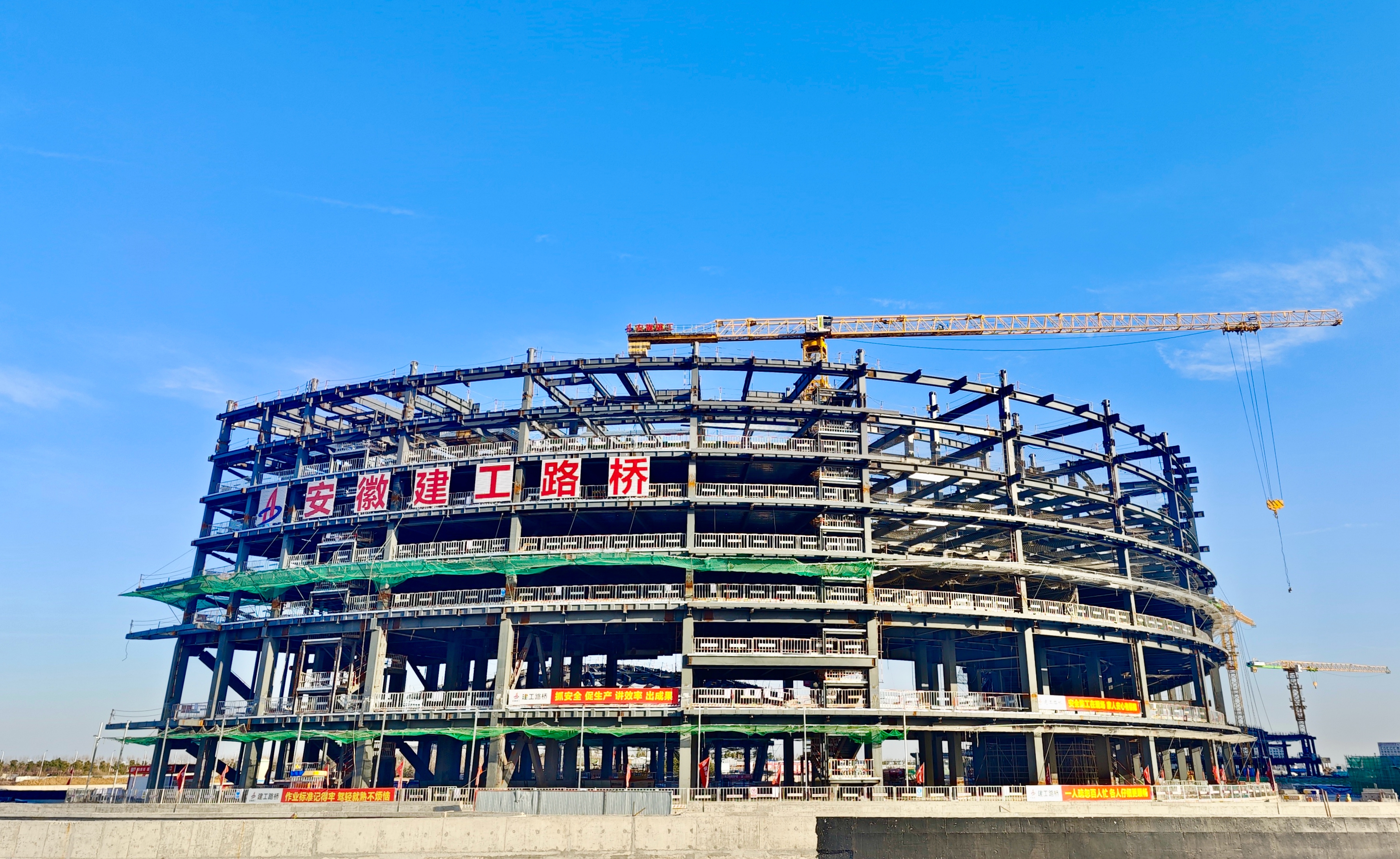 合肥新橋國(guó)際機(jī)場(chǎng)綜合交通中心項(xiàng)目正全面推進(jìn)旅客過夜用房鋼結(jié)構(gòu)安裝施工。