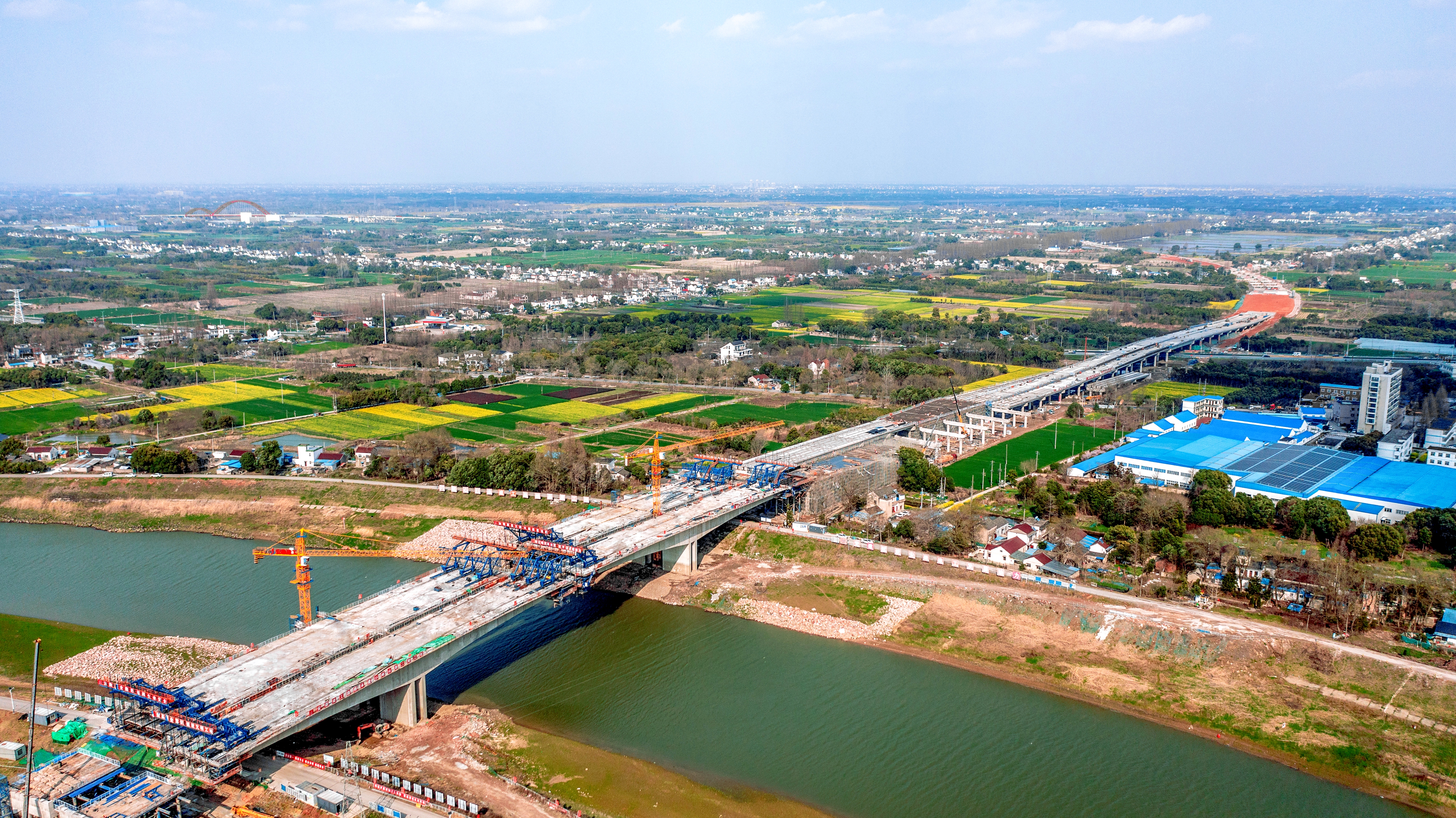 在蕪湖青弋江畔,S334峨山路東延伸新建二期工程青弋江特大橋東引橋左幅已順利貫通,主橋現(xiàn)澆施工緊鑼密鼓推進,確保如期實現(xiàn)4月份主橋合龍和年底主線貫通目標(biāo)。