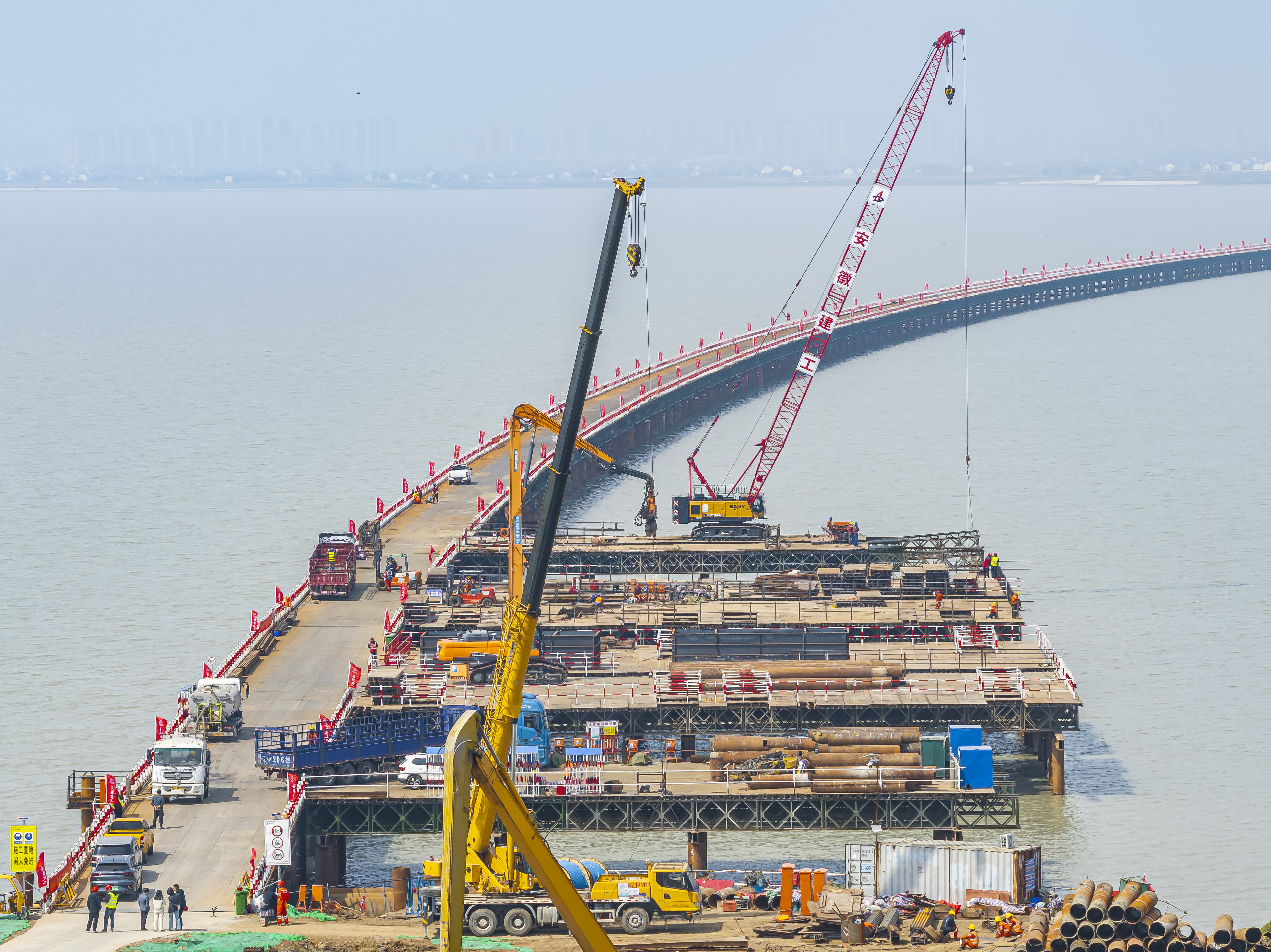 此次貫通的鋼便橋全長3.5公里,作為主橋施工的“生命線”,承擔(dān)著機(jī)械通行、材料運(yùn)輸?shù)汝P(guān)鍵任務(wù)。為確保鋼便橋順利貫通,項(xiàng)目團(tuán)隊(duì)東西兩岸雙向推進(jìn)、同步攻堅(jiān),科學(xué)調(diào)配人員、物資等要素,歷時(shí)83天順利實(shí)現(xiàn)全幅貫通,較原計(jì)劃提前20天完成任務(wù)。