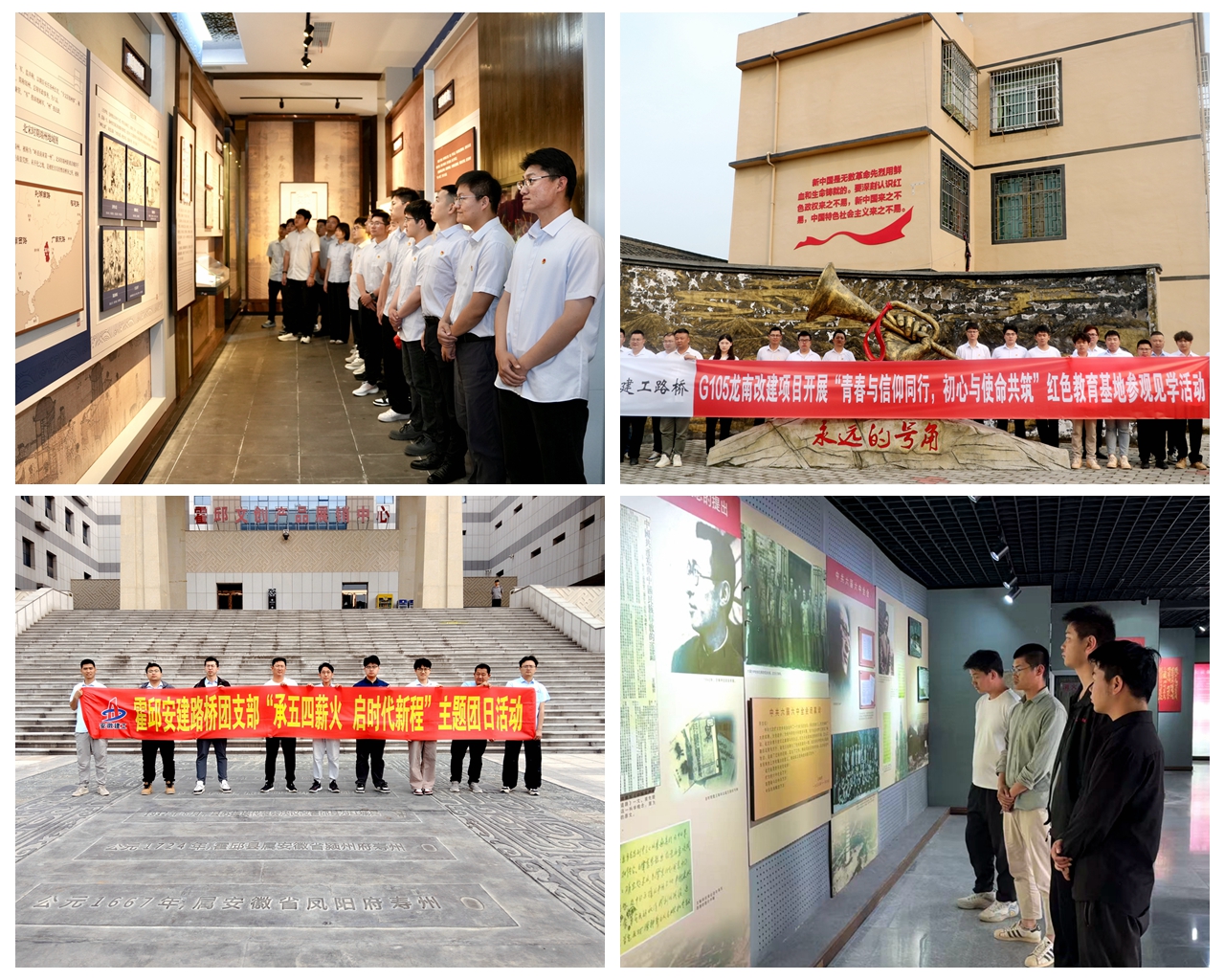 公路二公司團(tuán)總支、G105龍南改建項(xiàng)目、涇青高速04標(biāo)項(xiàng)目、霍邱安建路橋團(tuán)支部等團(tuán)組織前往包公故里文化園、金盆山戰(zhàn)斗舊址和紅巖村、王稼祥故居紀(jì)念館等紅色基地,通過沉浸式參觀、歷史文物觀摩和革命故事講解,重溫革命光輝歷史。