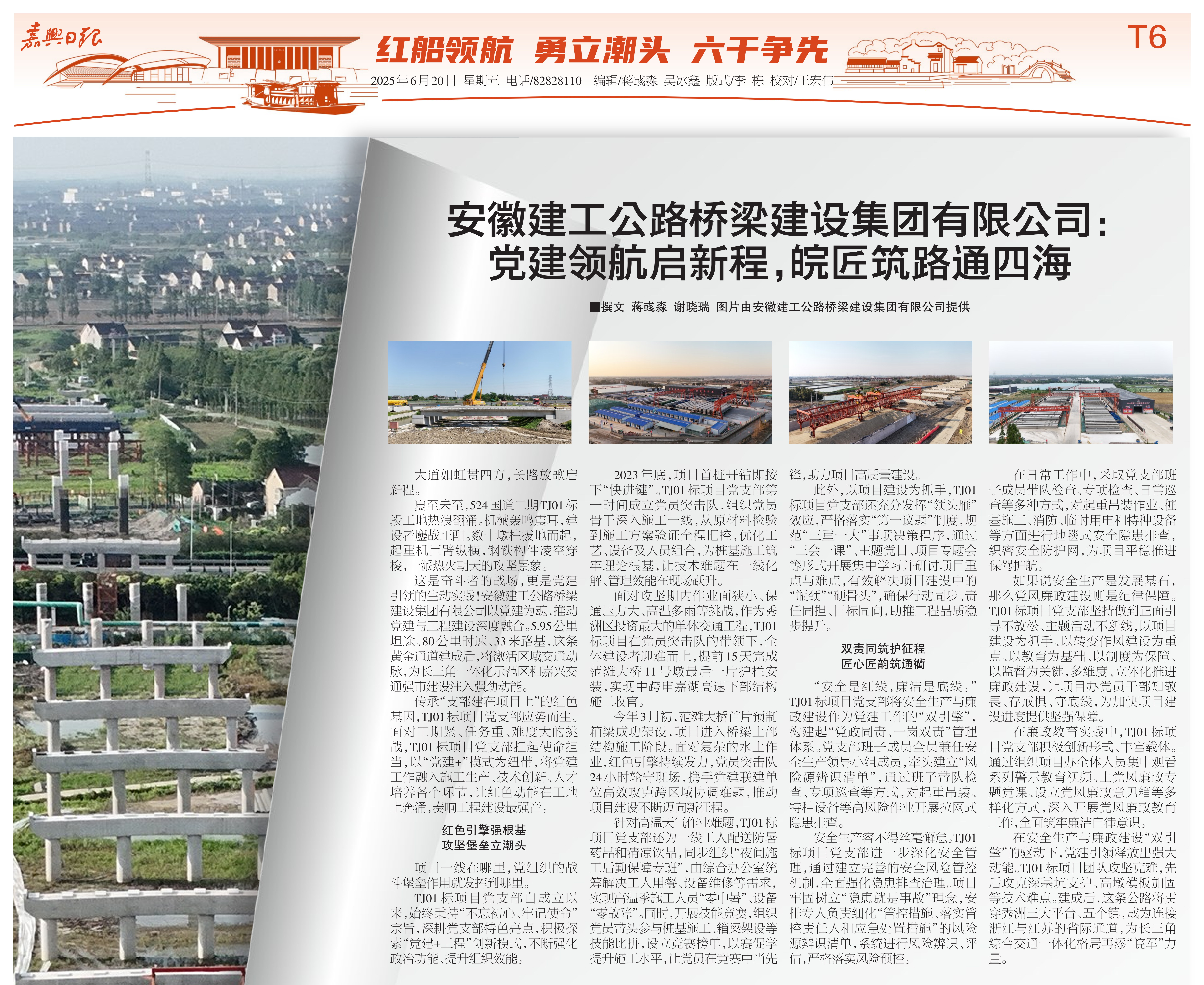 【名媒聚焦】嘉興日?qǐng)?bào):安徽建工公路橋梁建設(shè)集團(tuán)有限公司——黨建領(lǐng)航啟新程,皖匠筑路通四海