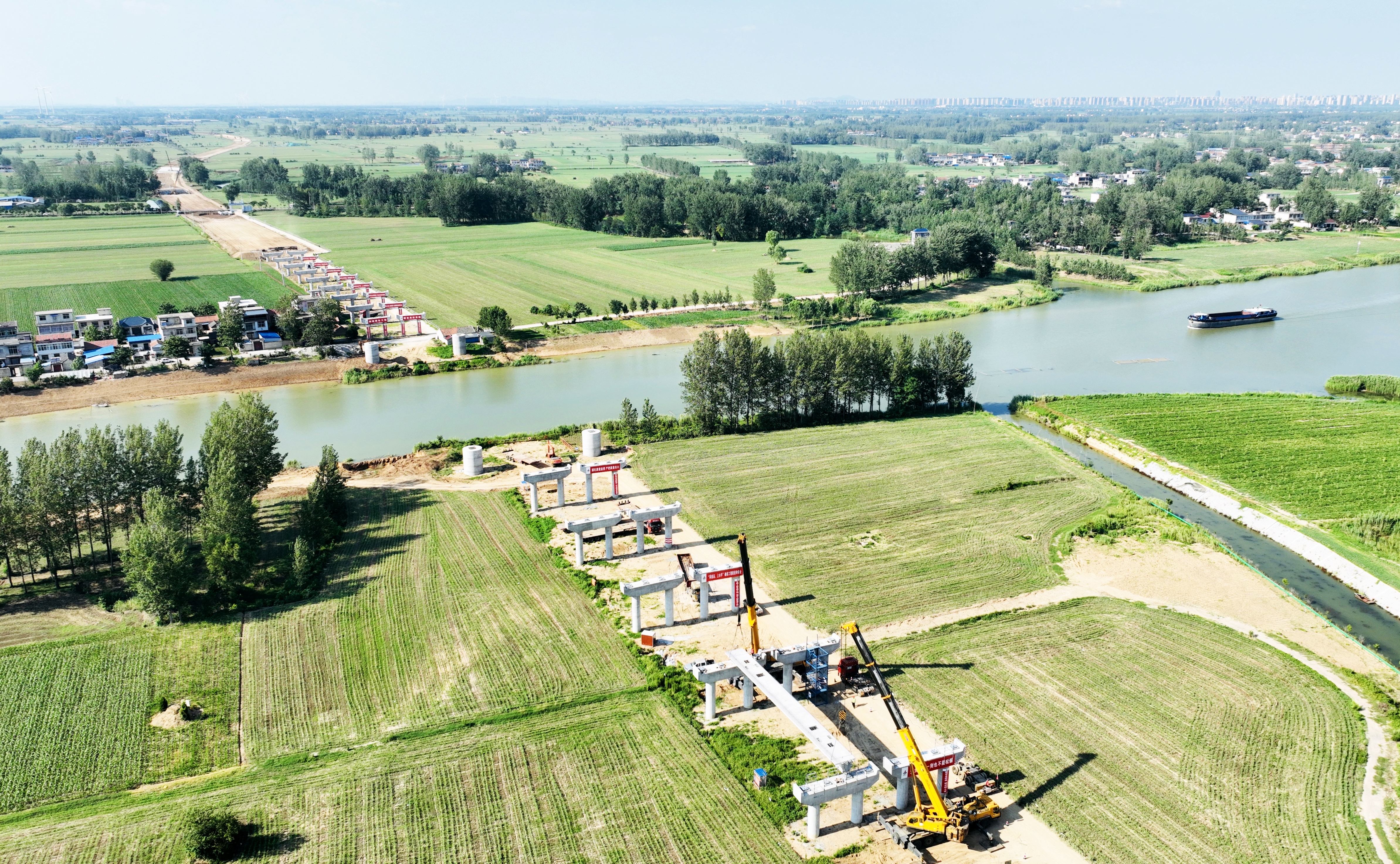 澮河大橋首片箱梁架設(shè)完成