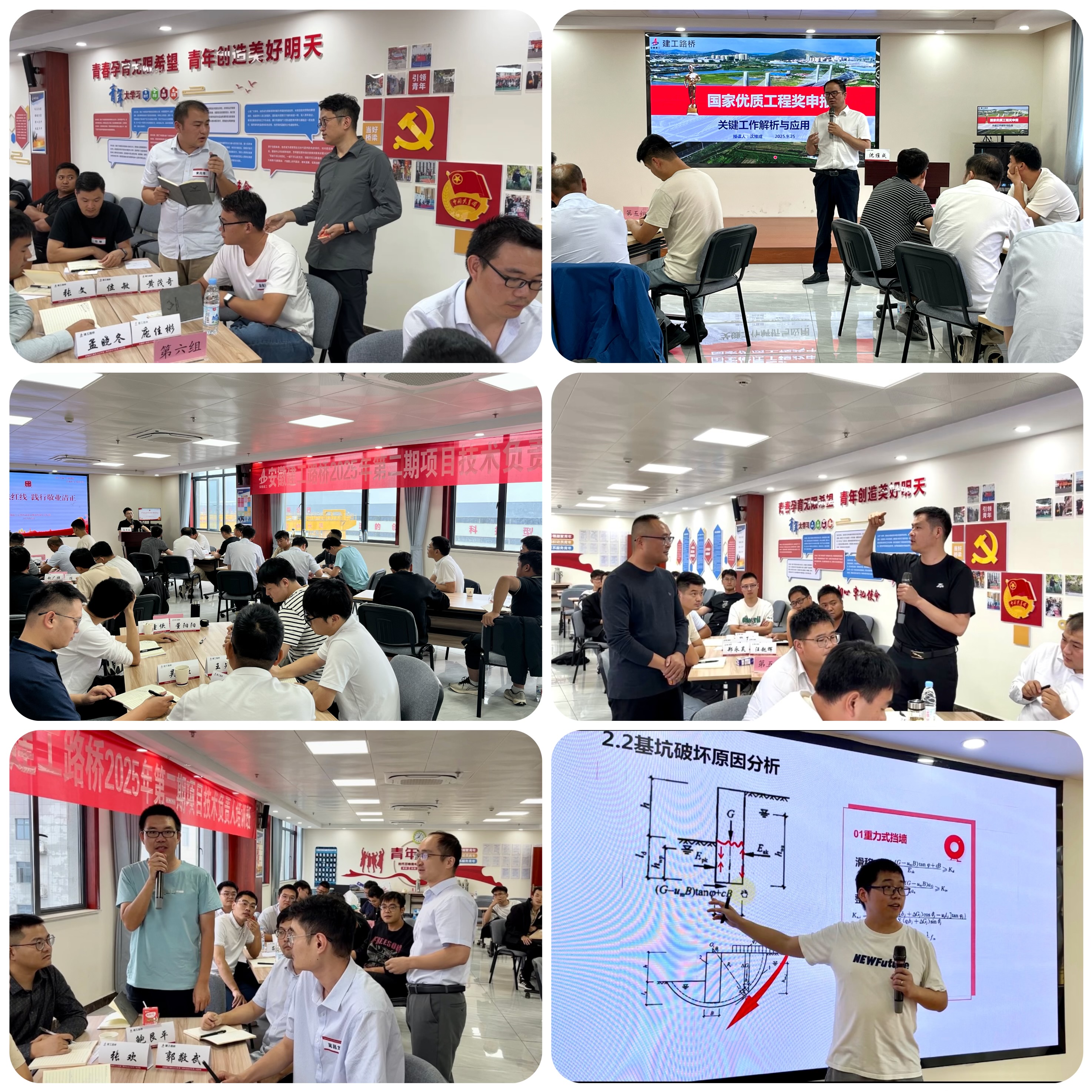 培訓(xùn)班完全采用內(nèi)部開(kāi)發(fā)課程,包括施工工法選題與申報(bào)、國(guó)家優(yōu)質(zhì)工程獎(jiǎng)申報(bào)、基坑工程常見(jiàn)病害分析及支護(hù)結(jié)構(gòu)設(shè)計(jì)、市政工程道路標(biāo)準(zhǔn)化施工、施工技術(shù)助產(chǎn)增效、廉潔風(fēng)險(xiǎn)防范、法律風(fēng)險(xiǎn)防范以及通用管理課程等。培訓(xùn)強(qiáng)調(diào)一線典型實(shí)戰(zhàn)案例探討,深入剖析原因,通過(guò)場(chǎng)景重現(xiàn)、主題討論、分享點(diǎn)評(píng)等形式,促進(jìn)參訓(xùn)學(xué)員間互動(dòng)交流與經(jīng)驗(yàn)傳承,有效幫助項(xiàng)目技術(shù)管理人才隊(duì)伍識(shí)別技術(shù)盲點(diǎn)及誤區(qū)。