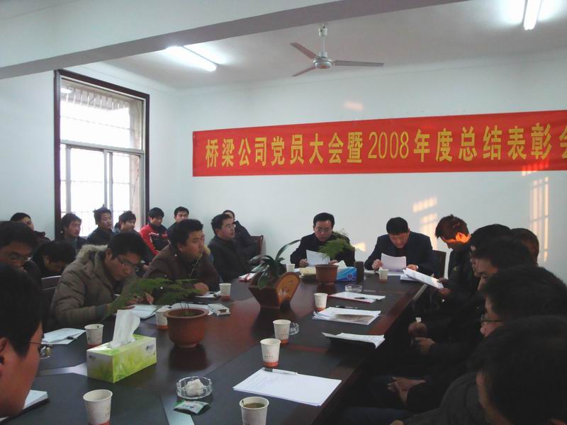 1月18日下午,橋梁公司隆重召開黨員大會暨2008年度總結表彰大會。大會對黨支部以及橋梁公司在過去一年中的工作作了全面總結,并發(fā)展了三位黨員,表彰了一批思想積極、工作表現(xiàn)突出的優(yōu)秀共產黨員、優(yōu)秀共青團員以及先進生產(工作)者。黨支部全體黨員、入黨積極分子及各類先進分子參加了會議,會議由劉振嶺書記主持。